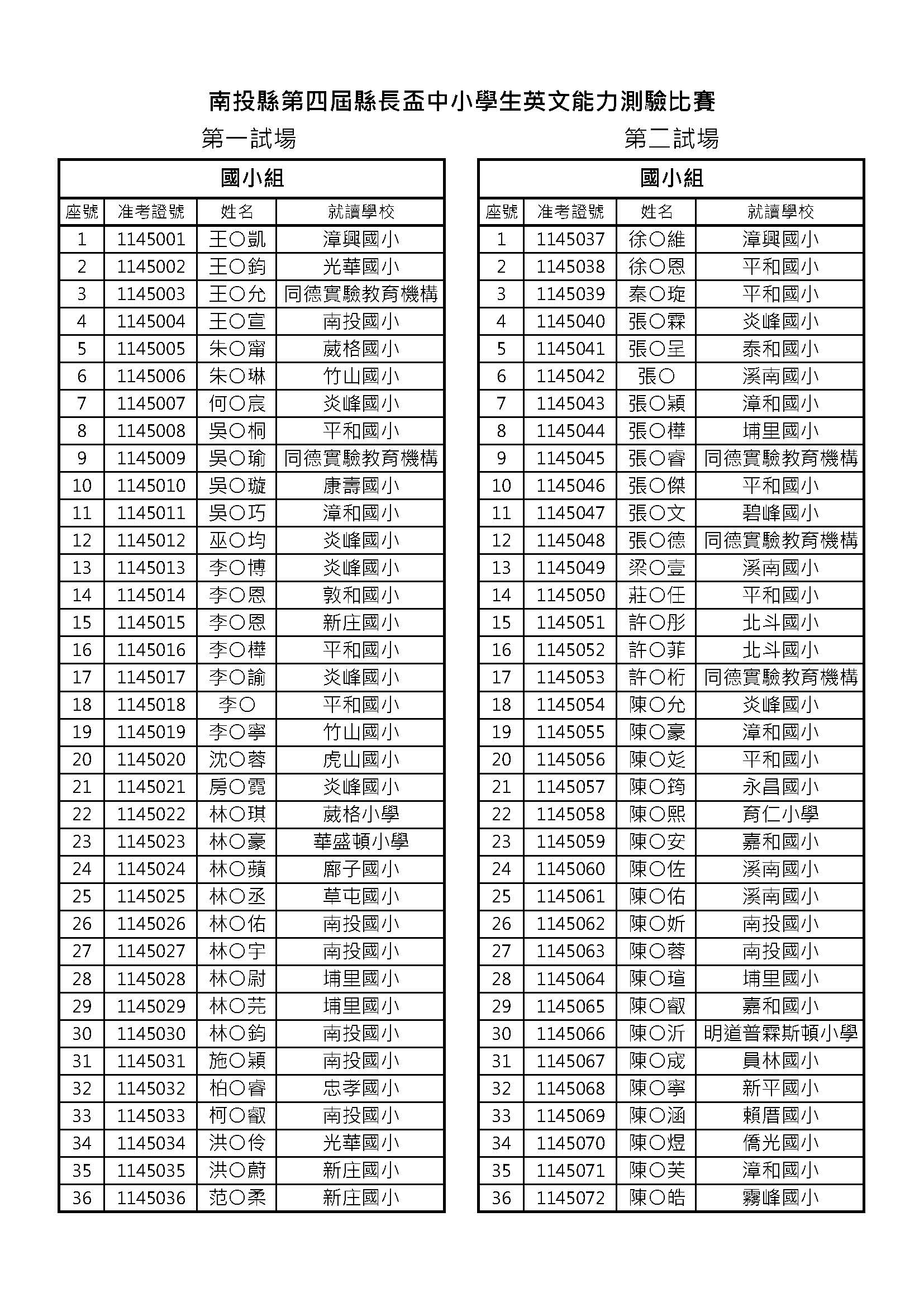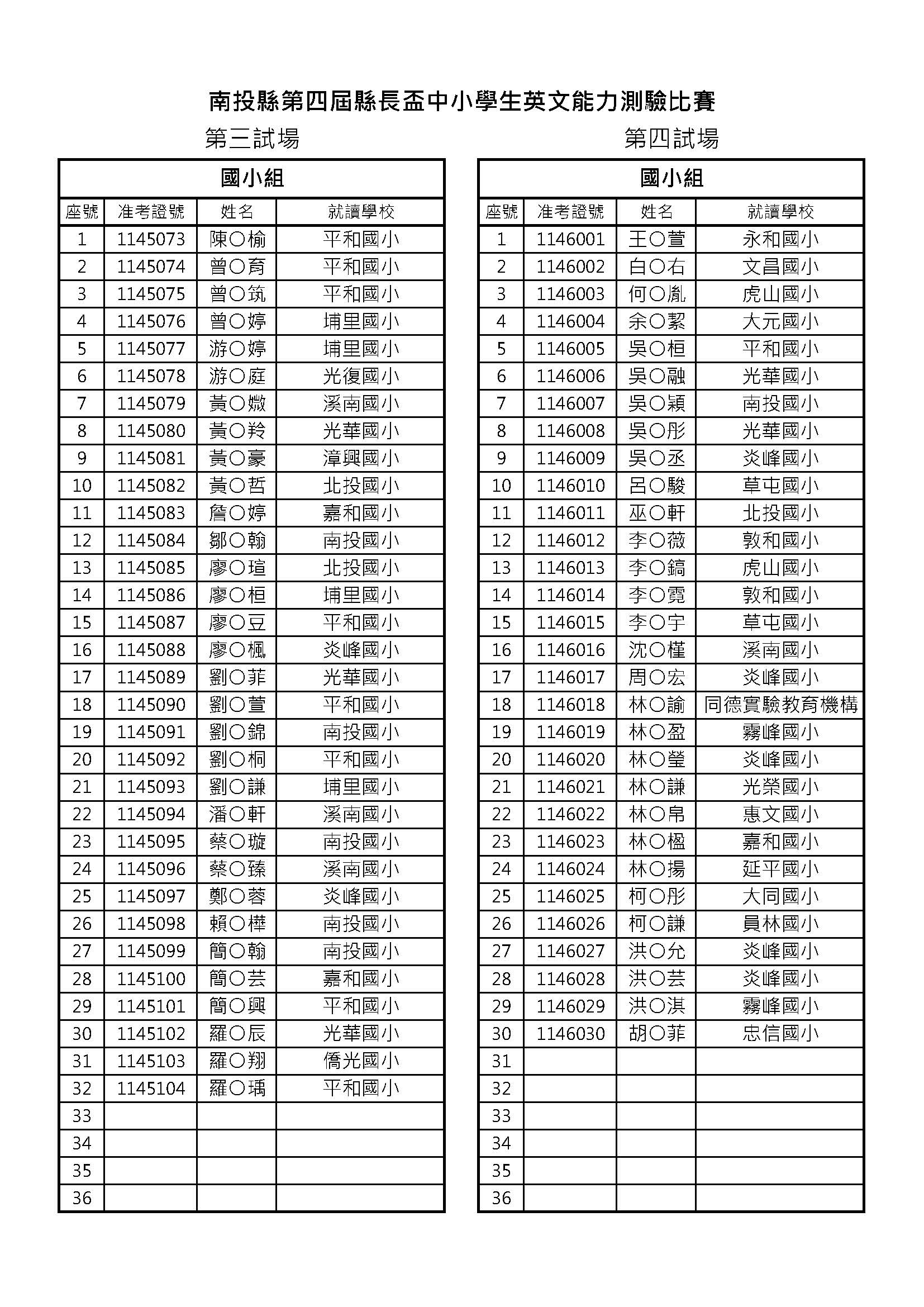 南投縣第四屆縣長盃中小學生英文閱讀測驗暨引導式寫作比賽