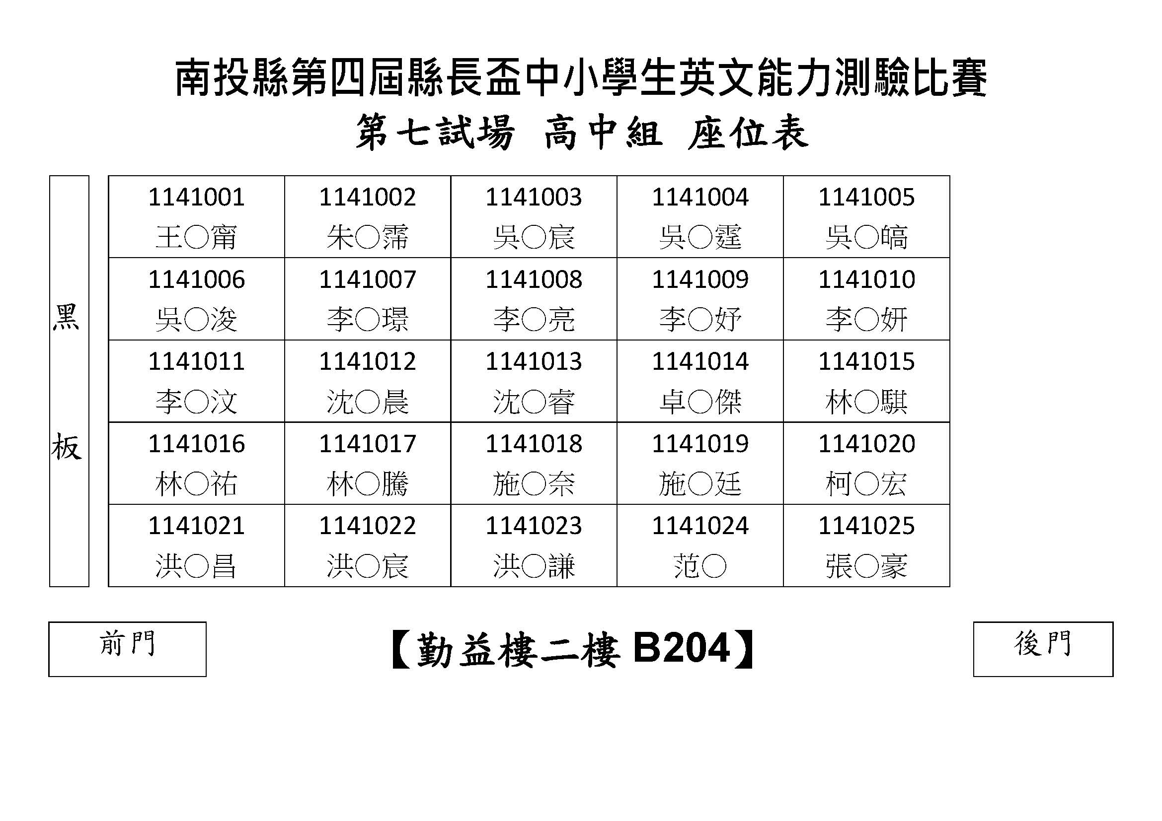 應考資訊(含考生注意事項、應試號碼、試場分配表等)