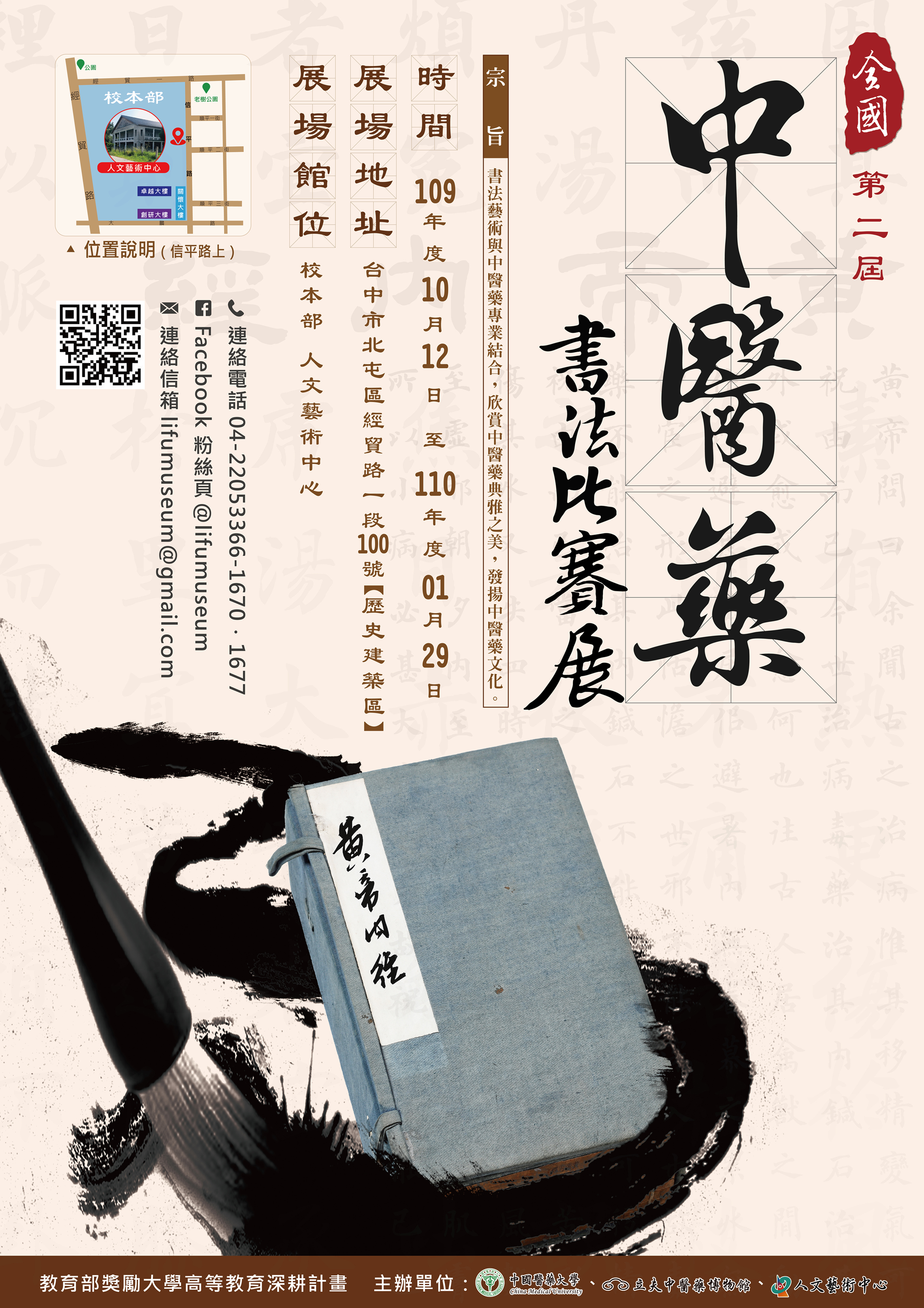 中國醫藥大學立夫中醫藥博物館舉辦「第二屆中國醫藥大學全國中醫藥書法比賽展」活動
