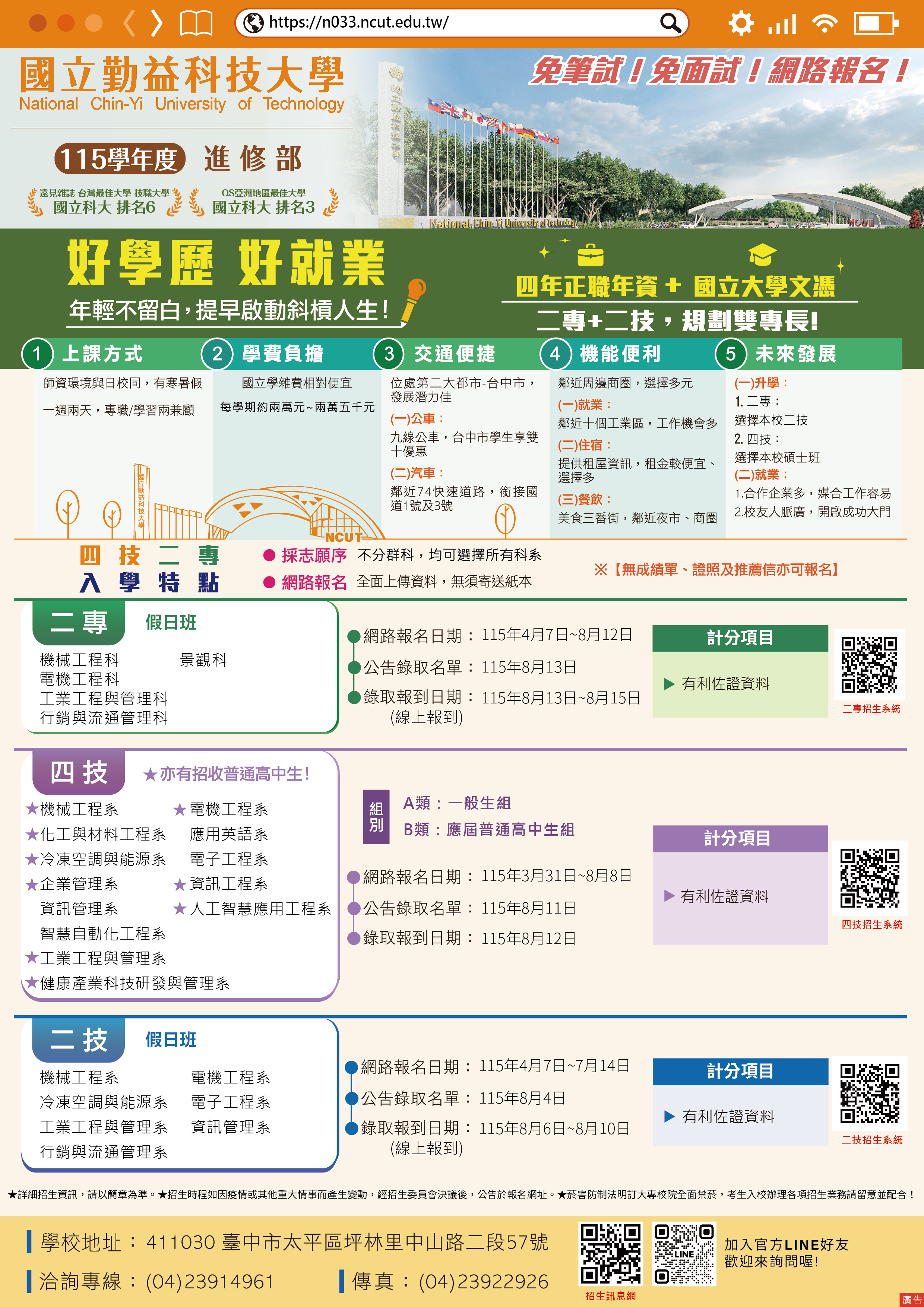 (四)餘相關報名資格及繳交文件,詳請上網查詢本校115學年度二技進修部招生簡章。